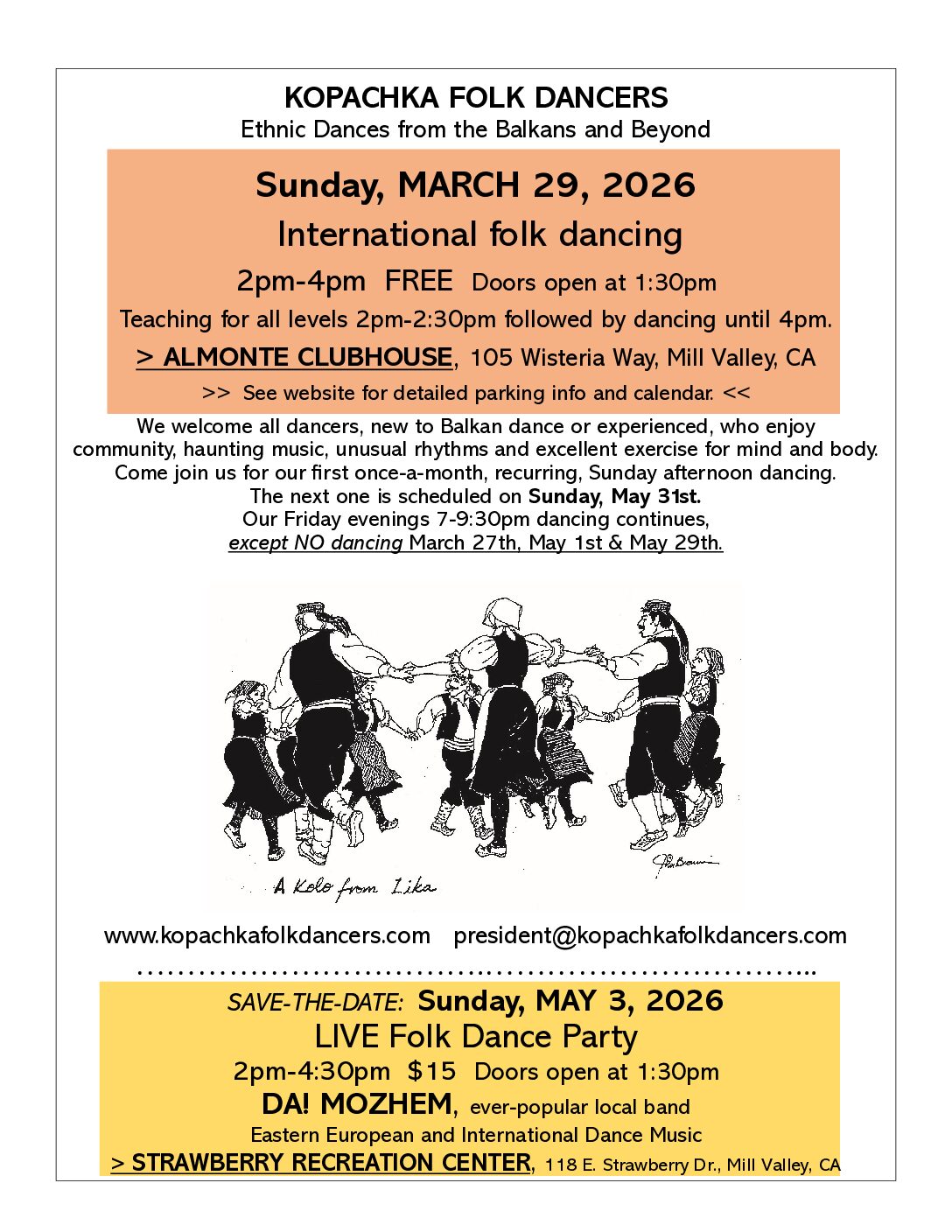 Kopachka Sunday afternoon dancing March-May2026 Doors open at 1:30pm. Check directions to see parking options.